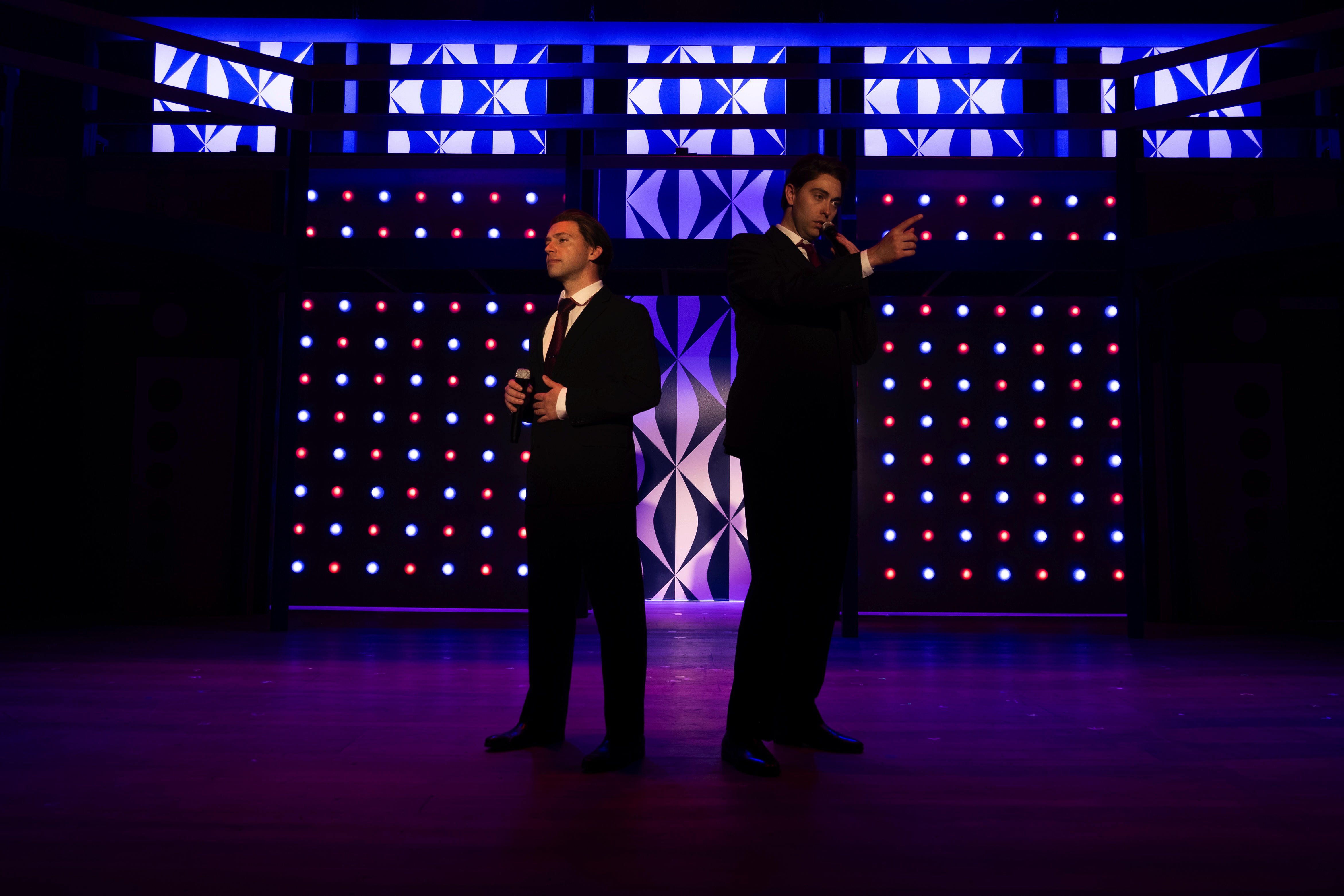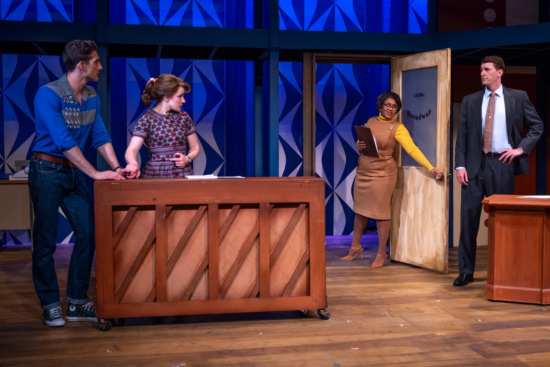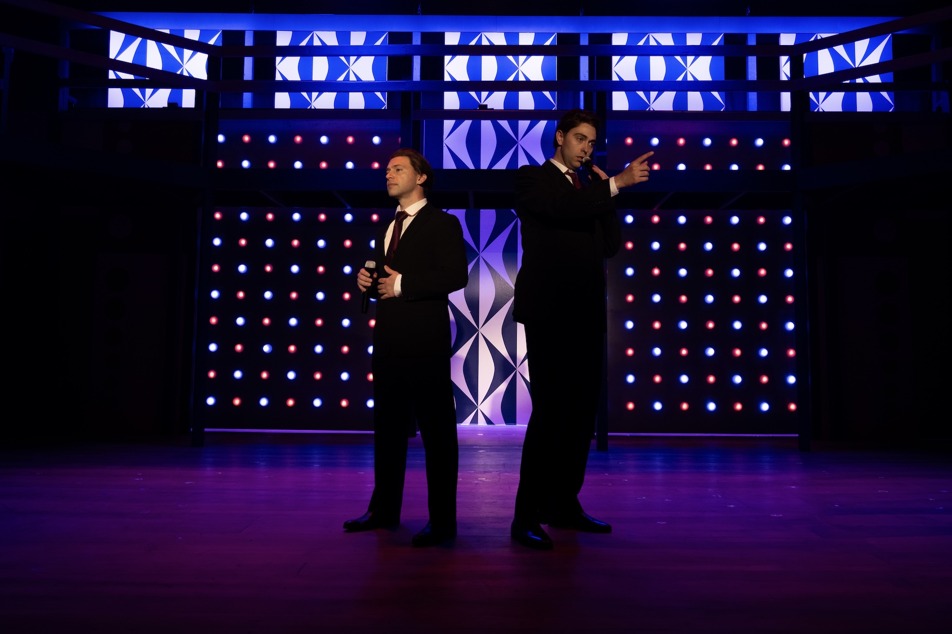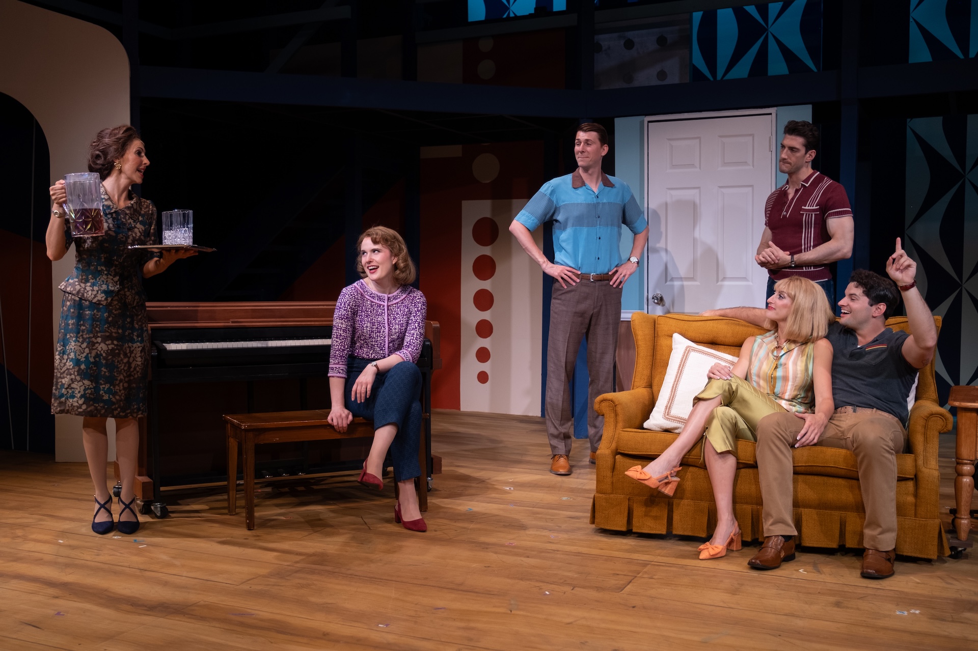 “A glorious, multi-level, Mid-Century-inspired set by Ranae Selmeyer that, beautifully lit by Jennifer Kules, effectively shifts between glitzy concert performances and intimate interior scenes, thanks in part to lightining-quick scene transitions.”